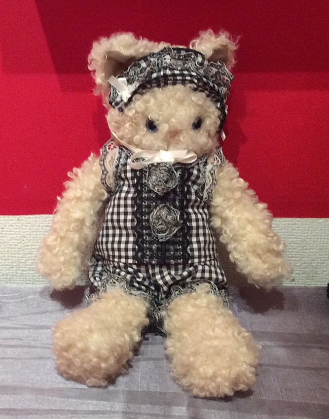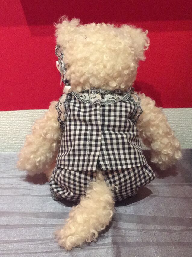 モフモフしたカールの毛並みとキラキラと輝くグラスアイが特徴のハンドメイドのモフドール。